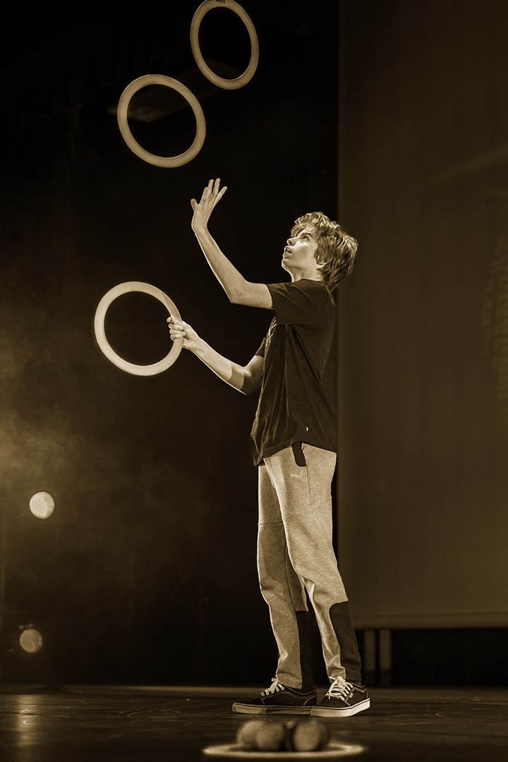 Acrobaties, jonglage, équilibres, aériens, portés… le gala reflète toute la richesse des arts du cirque et la diversité des disciplines travaillées au fil de l’année.