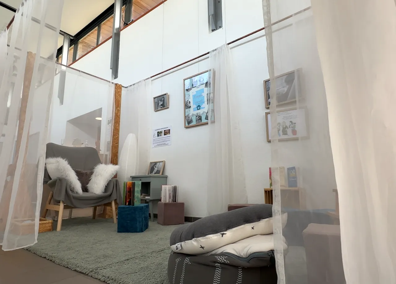 Pour celles et ceux qui veulent creuser, un espace berçant (cocooning, au calme, adapté aussi à l’allaitement) permet de retrouver des ressources autour de la petite enfance.